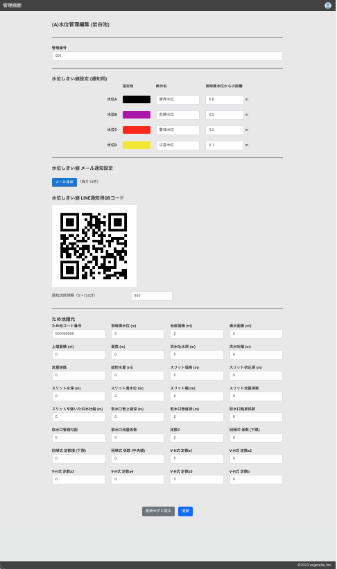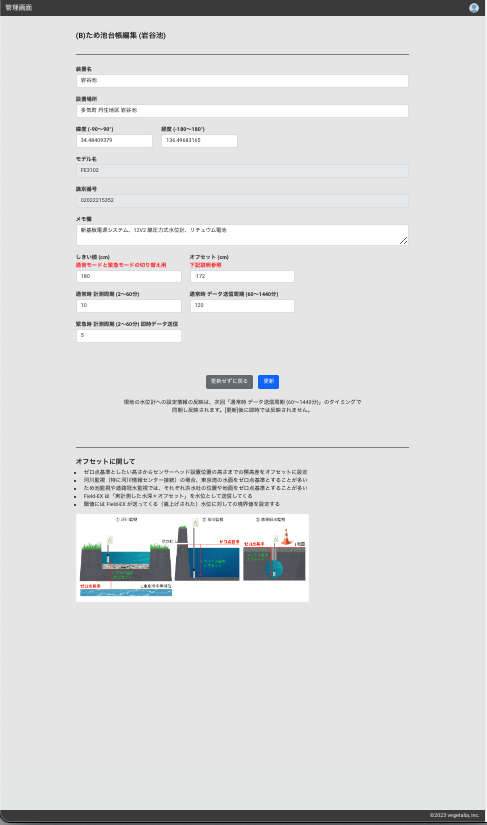 ため池の水位監視だけでなく、気象庁の降雨量予測データと水位実測値および、AI的なアルゴリズムから『ため池の水位予測』ができるよう農研機構とも共同にて開発をおこなっております。